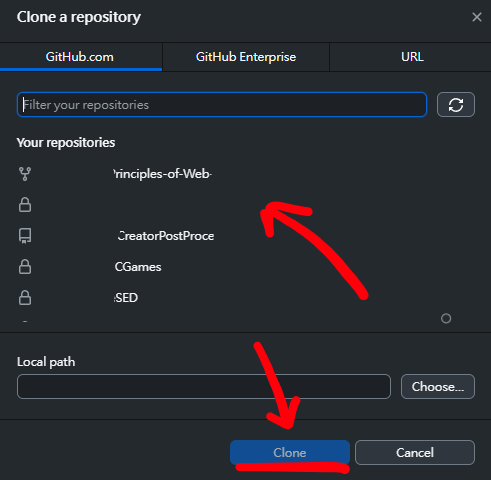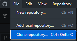 - Clone 存儲庫:在 GitHub Desktop 中,點擊左上方 "File" -> "Clone Repository",選擇要複製的存儲庫。